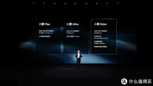 小鹏这次还明确了以后车型的智驾配置,会分成三个档次:Max版是标配,提供L2级辅助驾驶;Ultra版上了第二代VLA,软件能力其实摸到L4的边,不过硬件和法规还没跟上,所以目前还是归在L2;最顶的是Robo版,跟Robotaxi同源,算力飙到3000TOPS,硬件、系统全都两套备份,基本是准L4的体验了。