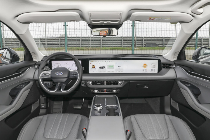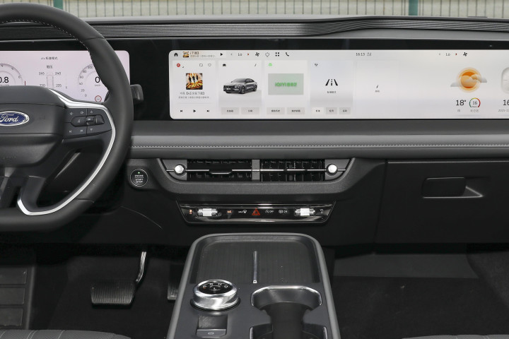 首先是车机系统:新一代 SYNC®+ 智行互联系统,搭配高通骁龙 8155 芯片,反应速度特别快。上车后,系好安全带的功夫(大概 2 秒),车机就启动完成了,说 “你好福特”,马上就能响应,不会像有些车那样 “等半天”。语音控制的功能也很全:调空调温度(“把空调调到 24 度”)、播放音乐(“放一首孩子爱听的儿歌”)、导航(“去附近的超市”),都能精准识别,就算我妈带点方言口音,车机也能听懂。有次我开车,孩子说 “爸爸我想听《孤勇者》”,直接说 “你好福特,放《孤勇者》”,车机马上就播放了,不用我动手操作,安全又方便。